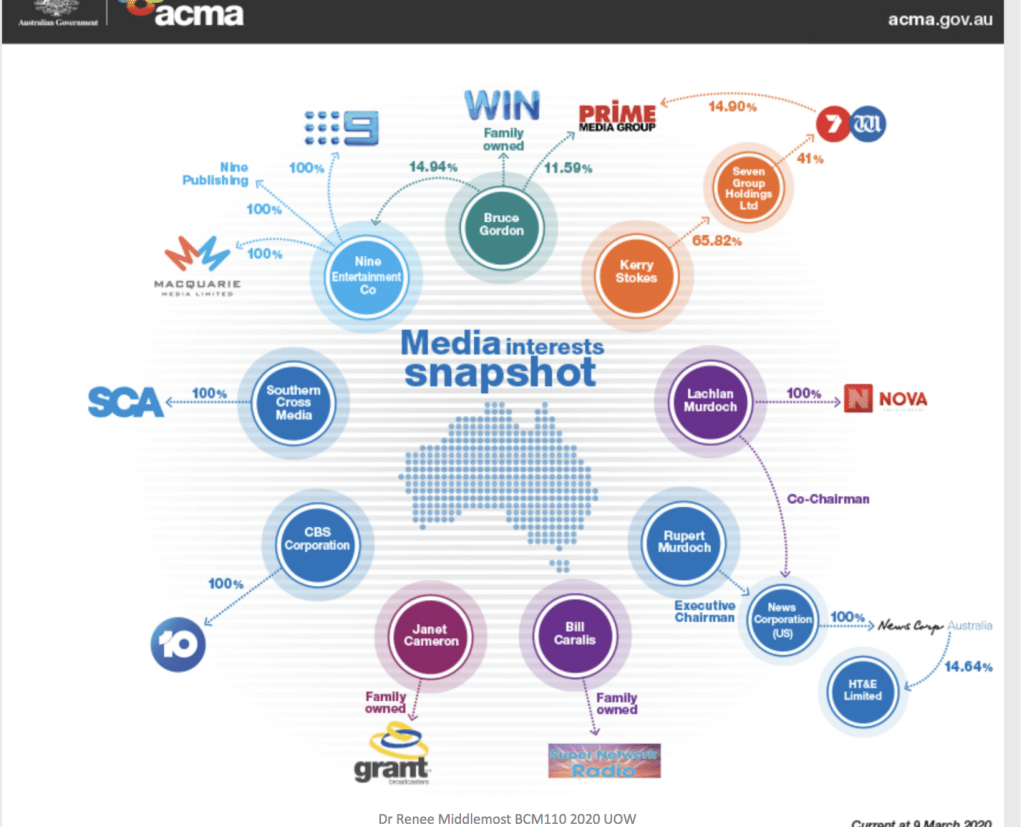 A question that is of significant importance in reference to Australia’s media culture, but yet goes unnoticed by most of society. As we are consuming various different sources of information each day from media platforms such as tv, social media, newspapers and the internet, it is important to understand who owns and controls the media that we devour in our society and the influence this has on people and their perspective of the worlds current affairs. Whenever a news story breaks, or we are confronted with global issues such as the most recent coronavirus pandemic, people gain their information and insights from the media. Therefore, it’s easy to say that without any media sources we would be oblivious to these issues all together as it is the number one source people turn to for information. Jeff Cohen, founding director of the Park Centre for Independent Media, describes media as “The nervous system of a democracy; if it’s not functioning well, democracy can’t function”.