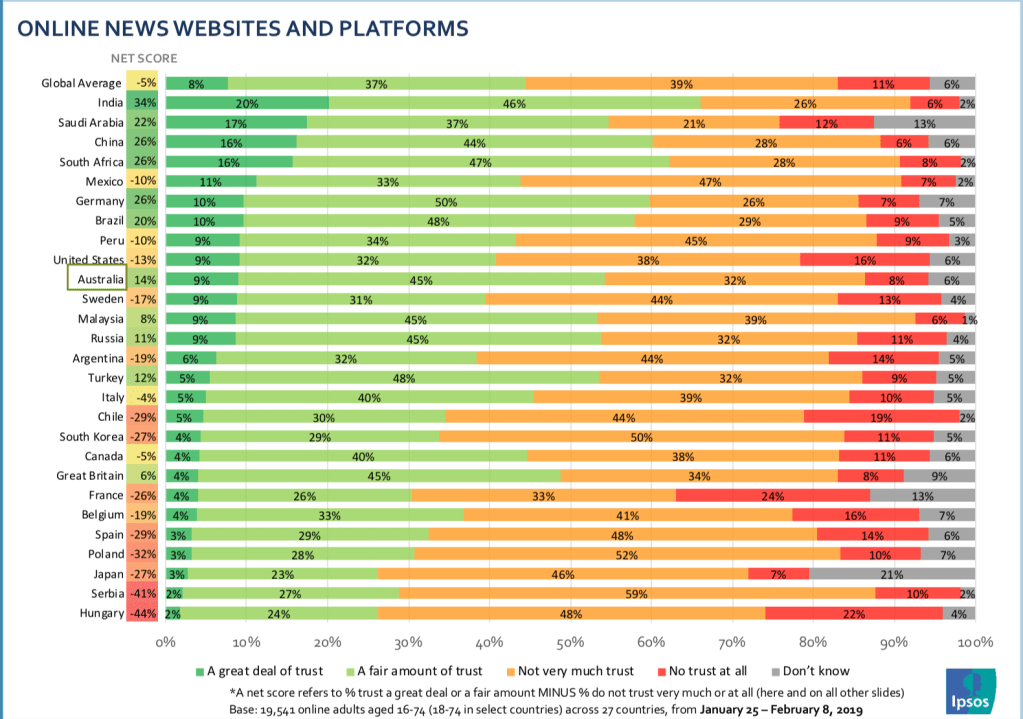 Ipsos. 2020. Australians trust the media less: Ipsos “Trust in the Media” study | Ipsos. Available at: https://www.ipsos.com/en-au/australians-trust-media-less-ipsos-trust-media-study. [Accessed 10 April 2020].