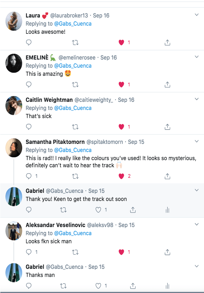 As shown, I’ve also used the twitter software to gain feedback on these aspects which has been beneficial for my development and DA. By utilising this approach to gain feedback, has allowed me to grow and develop my brand and understand my audience on a more personal level, thus is why I will continue to use this approach for the rest of my DA. As a whole, I’m continuing to love making the content I am producing and have a number of new ideas in which I’m really excited to try out. As I continue along with this digital artefact, I hope to bring more engaging content and learn more along the way.