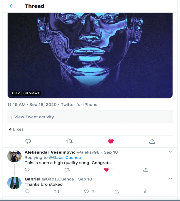 This feature has allowed me to thoroughly observe my audience, and tailor my production skills more towards them based off their playlists and current listening history. Having considered all these features and observed my most played tracks being Feel Better and Skies, (59,000 streams combined), has allowed me to better define my audience, and ideate my content towards them. Thus I did this, as to me it’s clear my audience mostly engages with the genres of future pop/future bass, I tested this by creating and prototyping one of my most recent works ‘Mindreader’, and tested this by gaining feedback on aspects such as the album cover design, including animations and clips of the track to gather peoples feedback and finally officially released it. (As shown below)